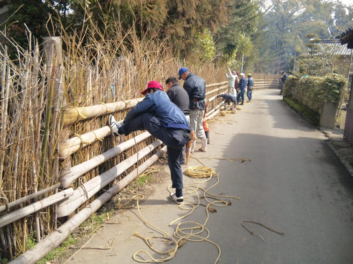 ◈ 未明の台風9号による被害… 竹垣の修復作業…