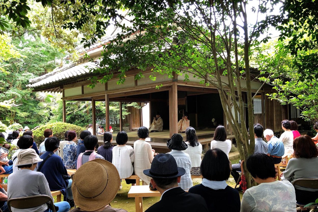 新座敷では東京で能楽師をしている河北さんの親族が能を披露する催しも開催される(写真は春に開催されている雅楽の催し)