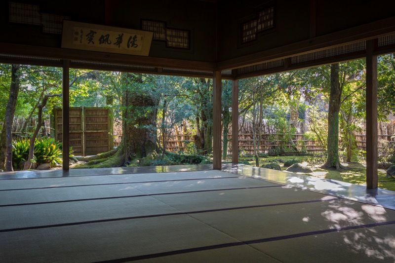 鮮やかな苔に⾶び⽯が配置された庭は⽊漏れ⽇さえも計算されている。「どこを切り取ってもいい写真が撮れる」とカメラマンも太⿎判
