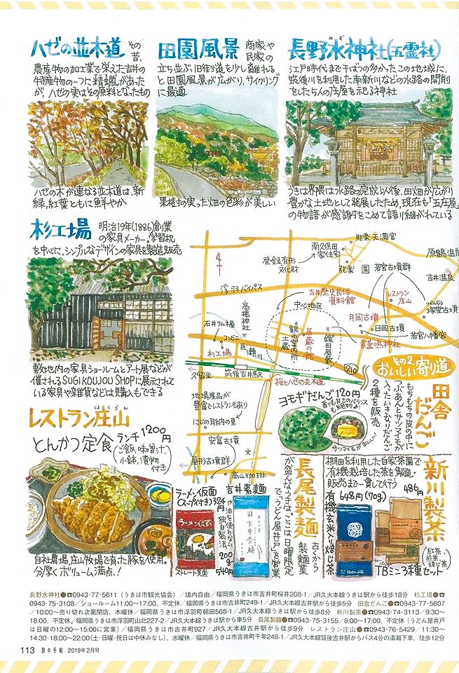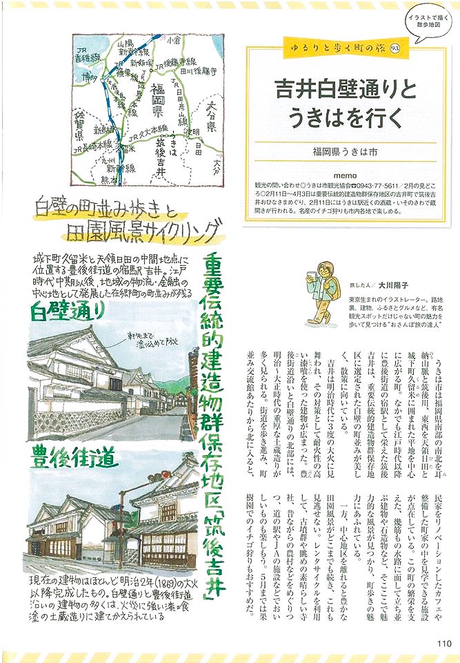 イラストレーター大川陽子さんが全国を巡り、おススメの地域を紹介する連載企画“ゆるりと歩く町の旅”のうきは市特集に「楠森堂のことが載ってたよ」との情報が。
