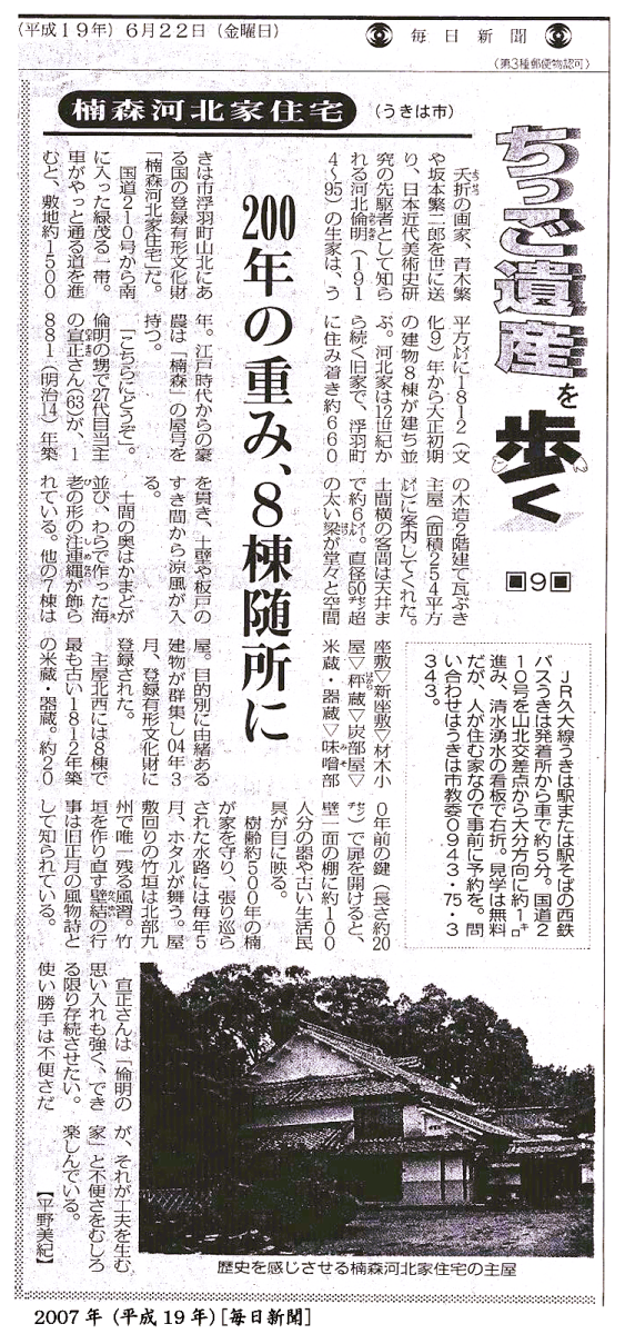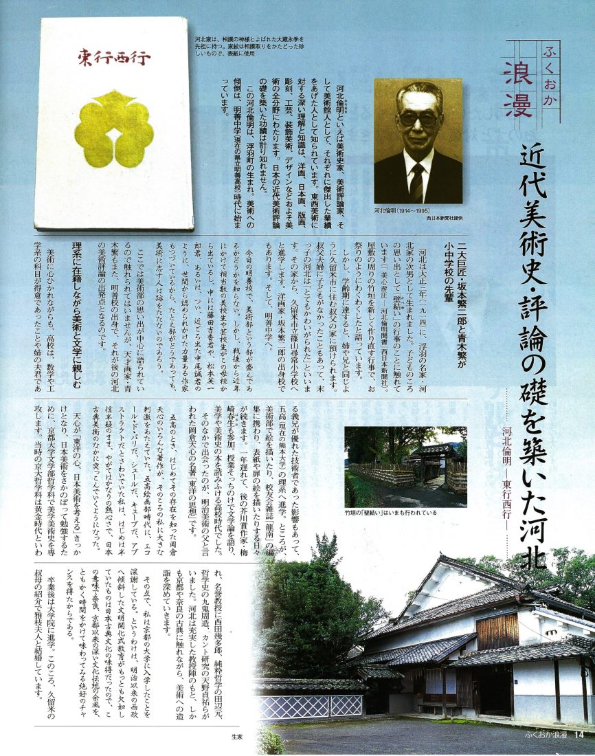 日本近代美術史研究の先駆者であり、美術評論化のリーダーである河北倫明氏は、この楠森の家に生まれました。