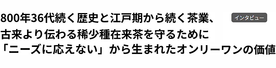 経道 interview|在来茶を守るために..〝ニーズに応えない〟から生まれたオンリーワンの価値
