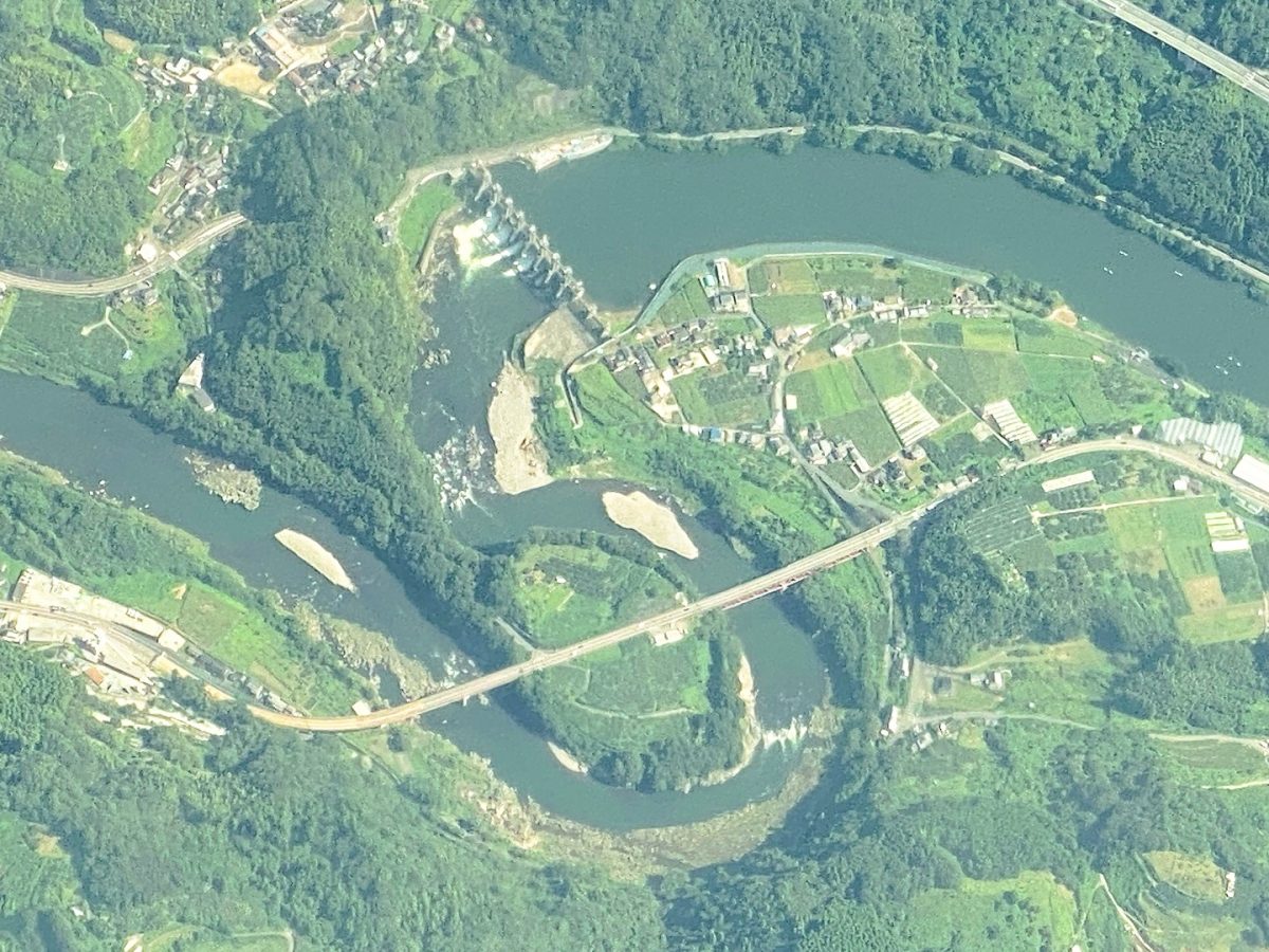 豪雨災害で夜明ダムの水門が被害に遭ったため貯水不可能となり、河底が露出。滅多に見ることが出来ない昔の水門も。